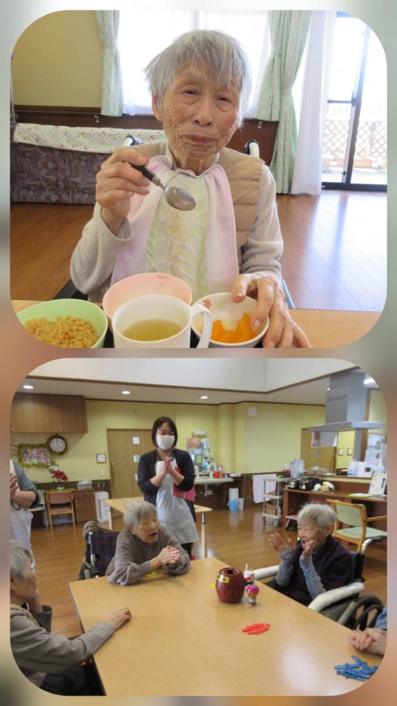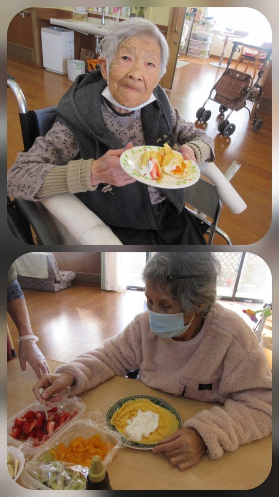 ユニットでのデザート調理や、日常生活の様子です。