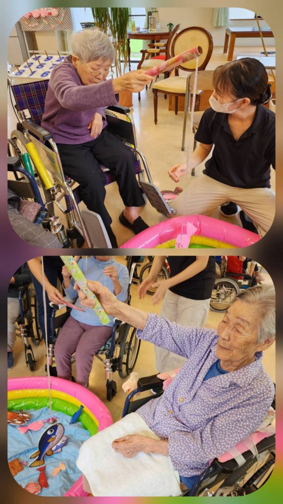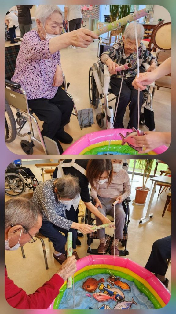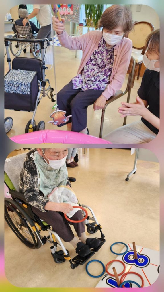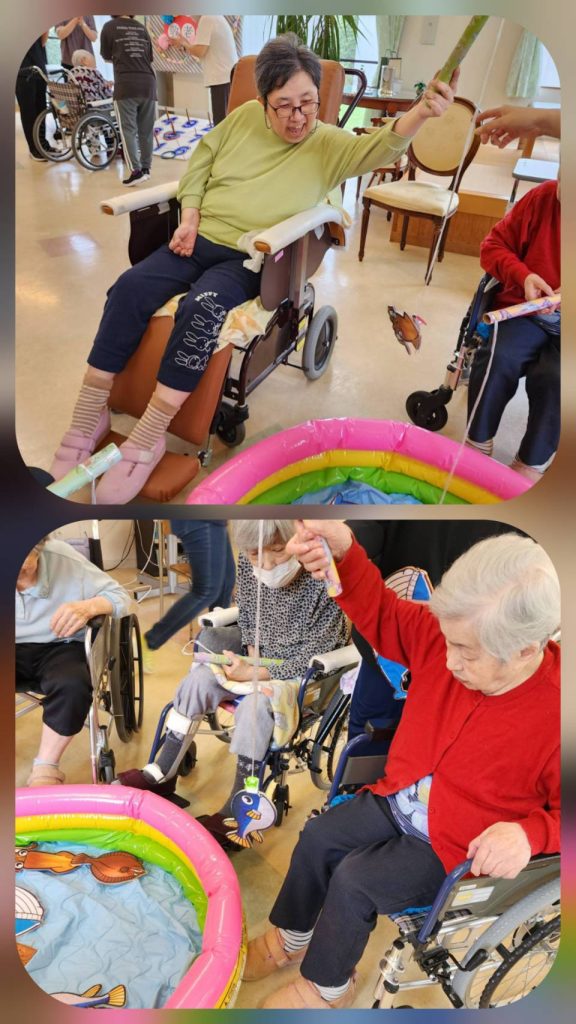 敬老会では、輪投げ、魚つり、ボーリングを行いました。